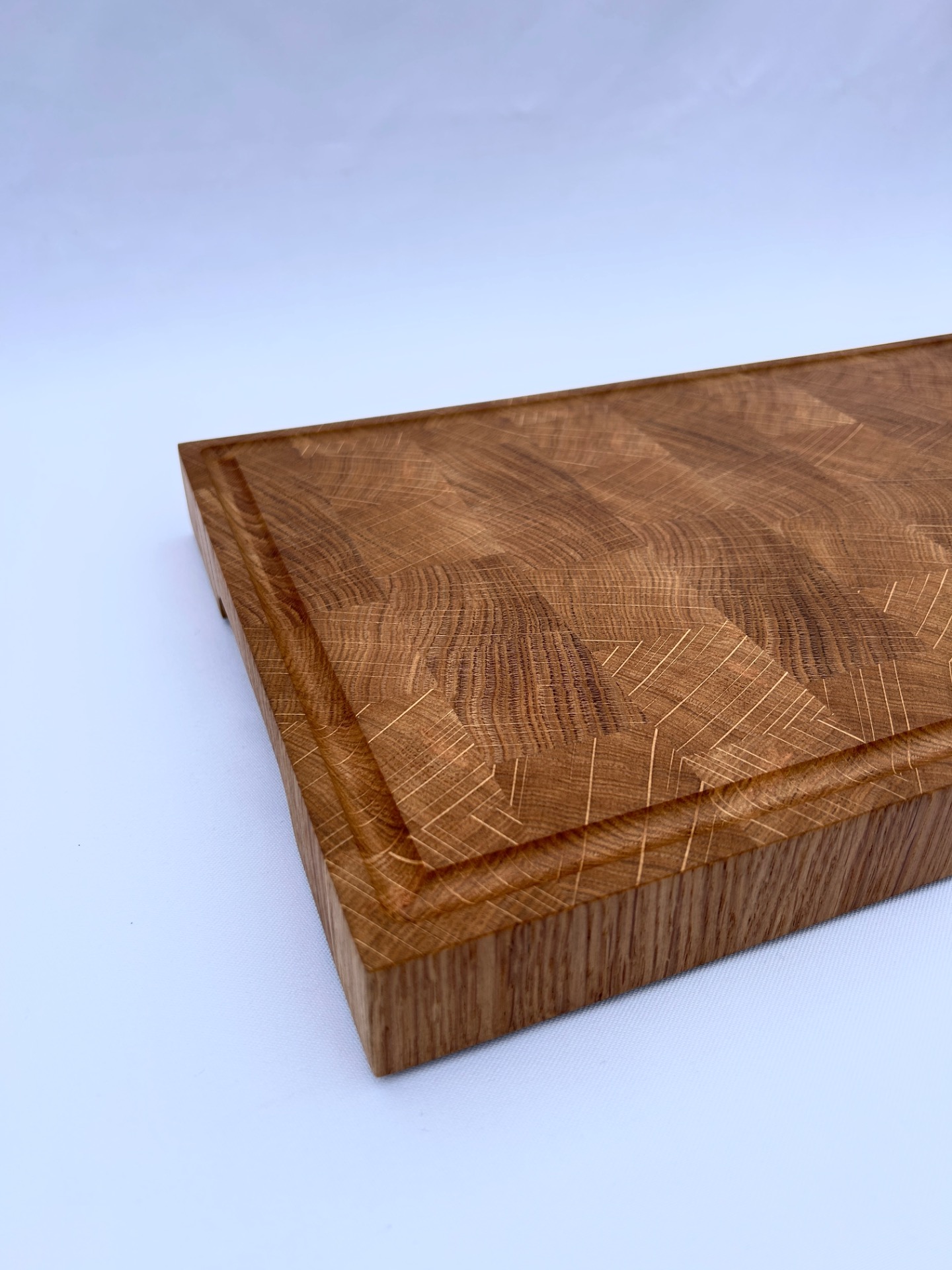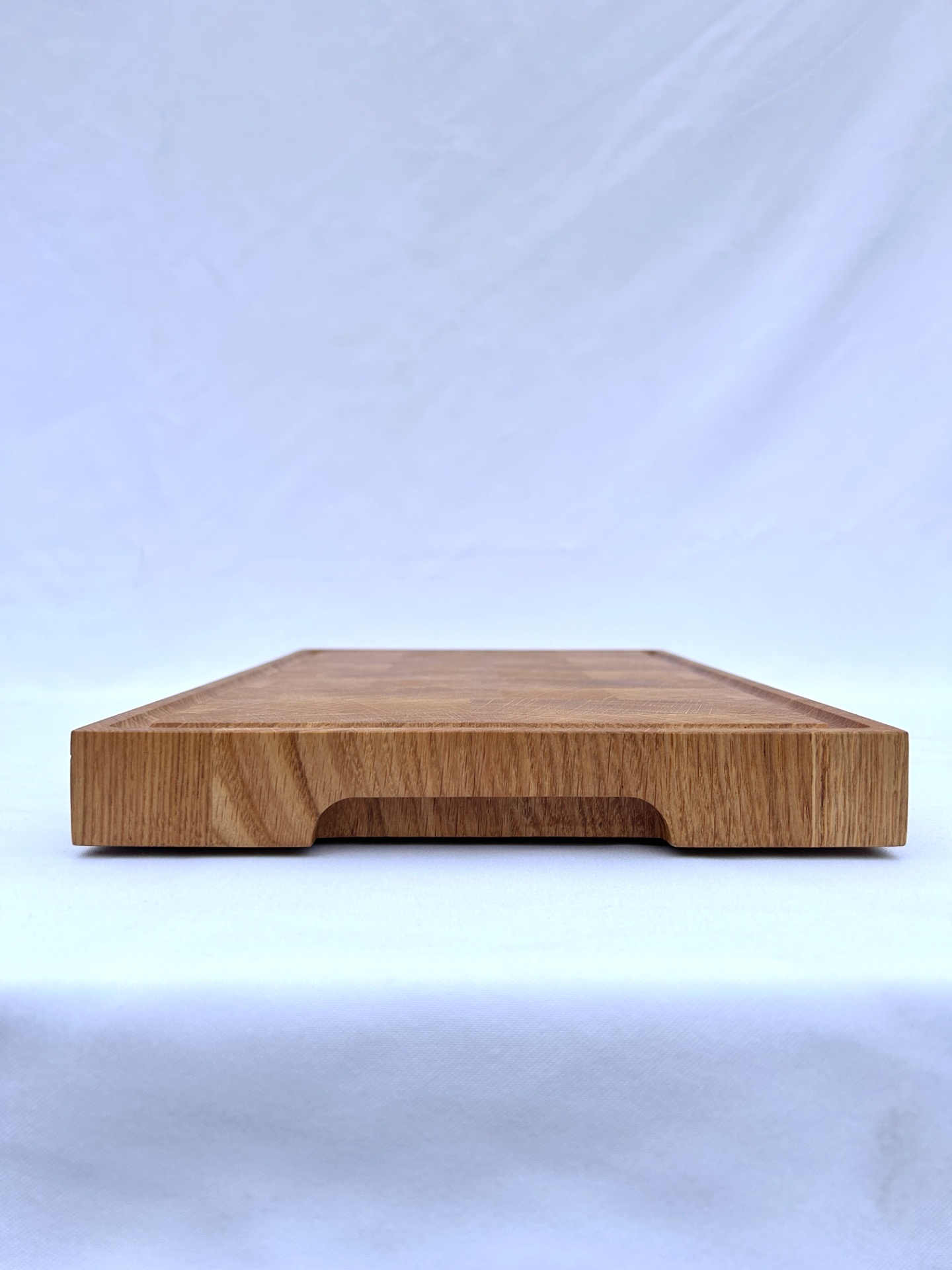 Elegantní a poctivě ručně vyrobené masivní prkno z tvrdého dřeva, vzniklé ve spolupráci s českým truhlářem. Konstrukce end grain (řez napříč vlákny) zajišťuje mimořádnou odolnost, dlouhou životnost a šetrnost k ostří nožů.